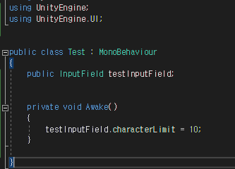 | Unity(유니티)_InputField 특정 문자만 작성 가능하게 하기 (0) | 2024.02.28 |